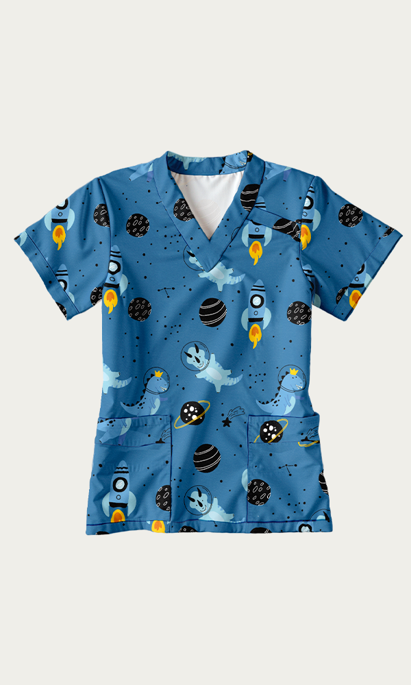 Dale un toque de energía a tu jornada con la Filipina Space Rex de la línea Creative One. Su estampado azul con dinosaurios y cohetes te acompaña con estilo y buena vibra. Hecha en tela antifluídos, suave y ligera, ofrece corte moderno, ajuste cómodo y múltiples bolsillos. Perfecta para profesionales que buscan destacar sin renunciar a la comodidad.